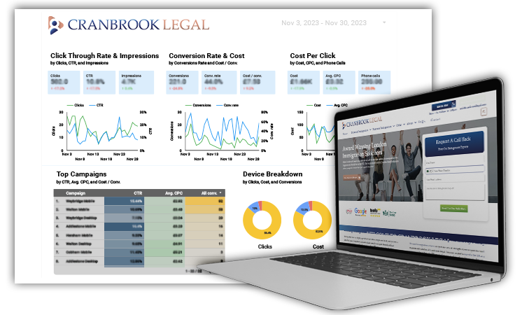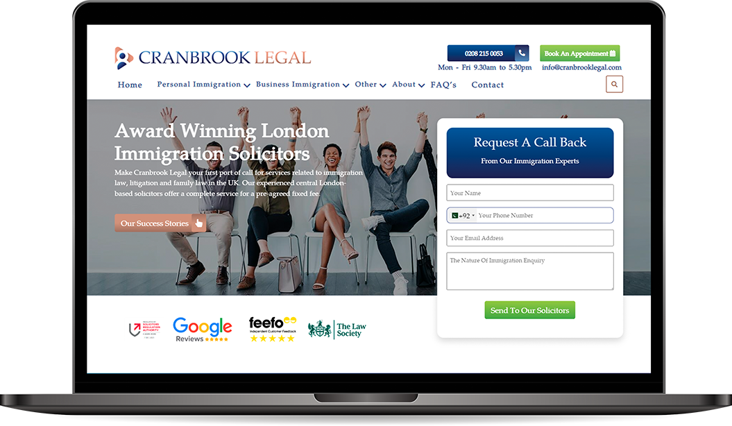 Cranbrook Legal is the leading UK immigration law specialist based in London. They were seeking a performance marketing agency that could not only understand the complexities of our industry but also devise a strategy that would truly set us apart from our competitors. We were brought on board to rebrand the firm, build a new inbound designed website as well as lead the organic, paid search, social media marketing, produce video content and design brochures based on the various UK visas and licences as the firm was underperforming in all areas.